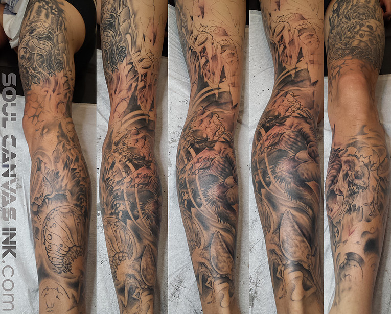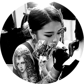 Kin Liu specializes in realism and portrait tattoos, which he has been working to perfect for the last fifteen years. In his down time he studies fine art, focusing on black and white portraiture and oil painting.